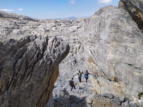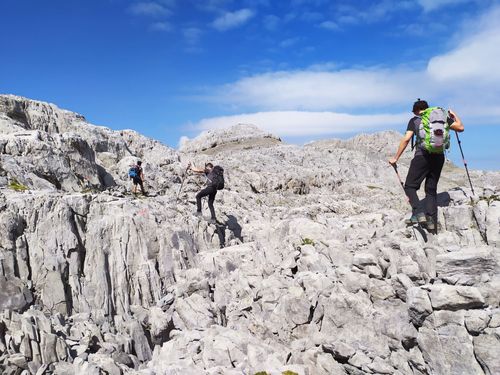 Coronaremos la emblemática Mesa de los Tres Reyes (2.428 m) techo de Navarra, el punto donde históricamente se unían los tres antiguos reinos de Navarra, Aragón y Francia. Caminaremos por el espectacular y técnico laberinto kárstico de Larra antes de cruzar a la vertiente francesa, donde el paisaje se torna verde. Terminaremos la jornada en el Refugio de Laberouat, bajo la sombra de los imponentes paredones de caliza del circo de Lescun.